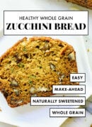 This amazing zucchini bread recipe is made healthy with whole grains, honey (or maple syrup) and coconut oil instead of butter. Easily vegan/gluten free.